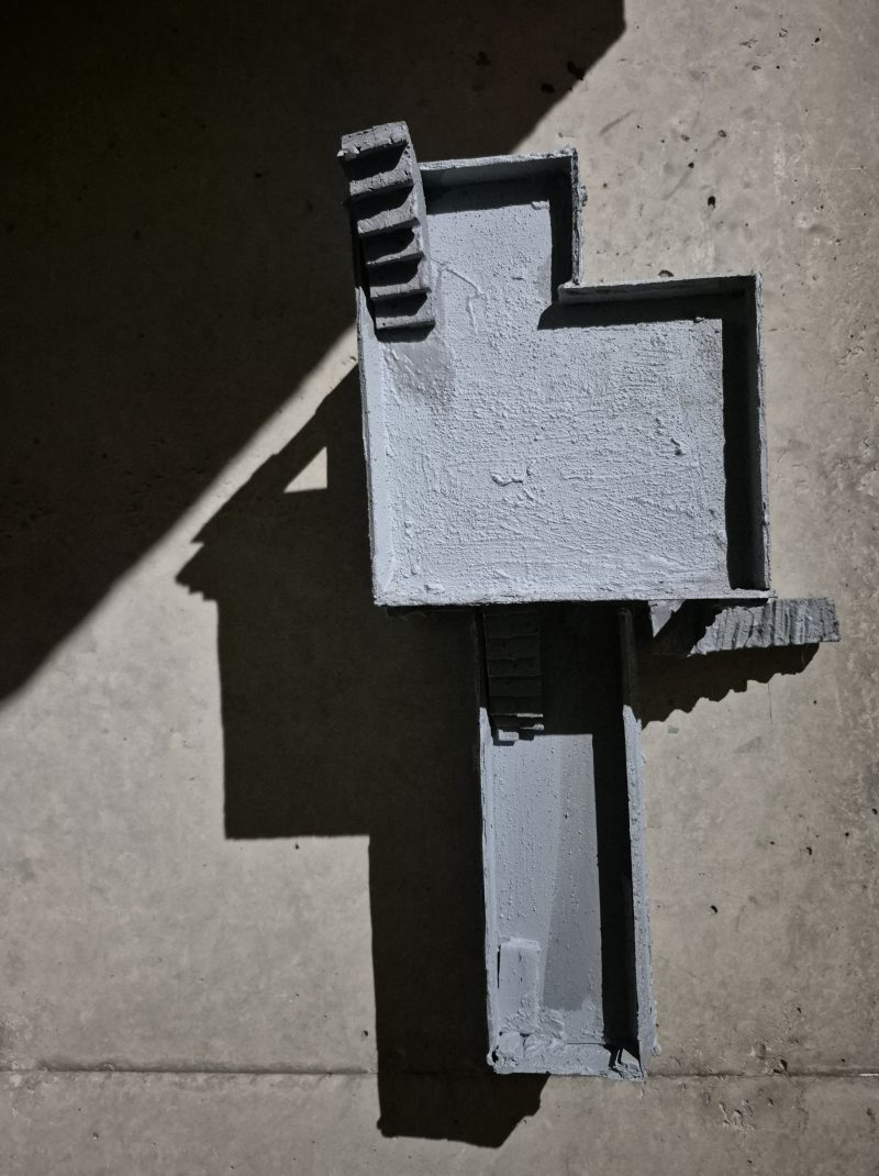 “paused” 2025, balsa wood, paint, plaster 50 x30 x 20 cm