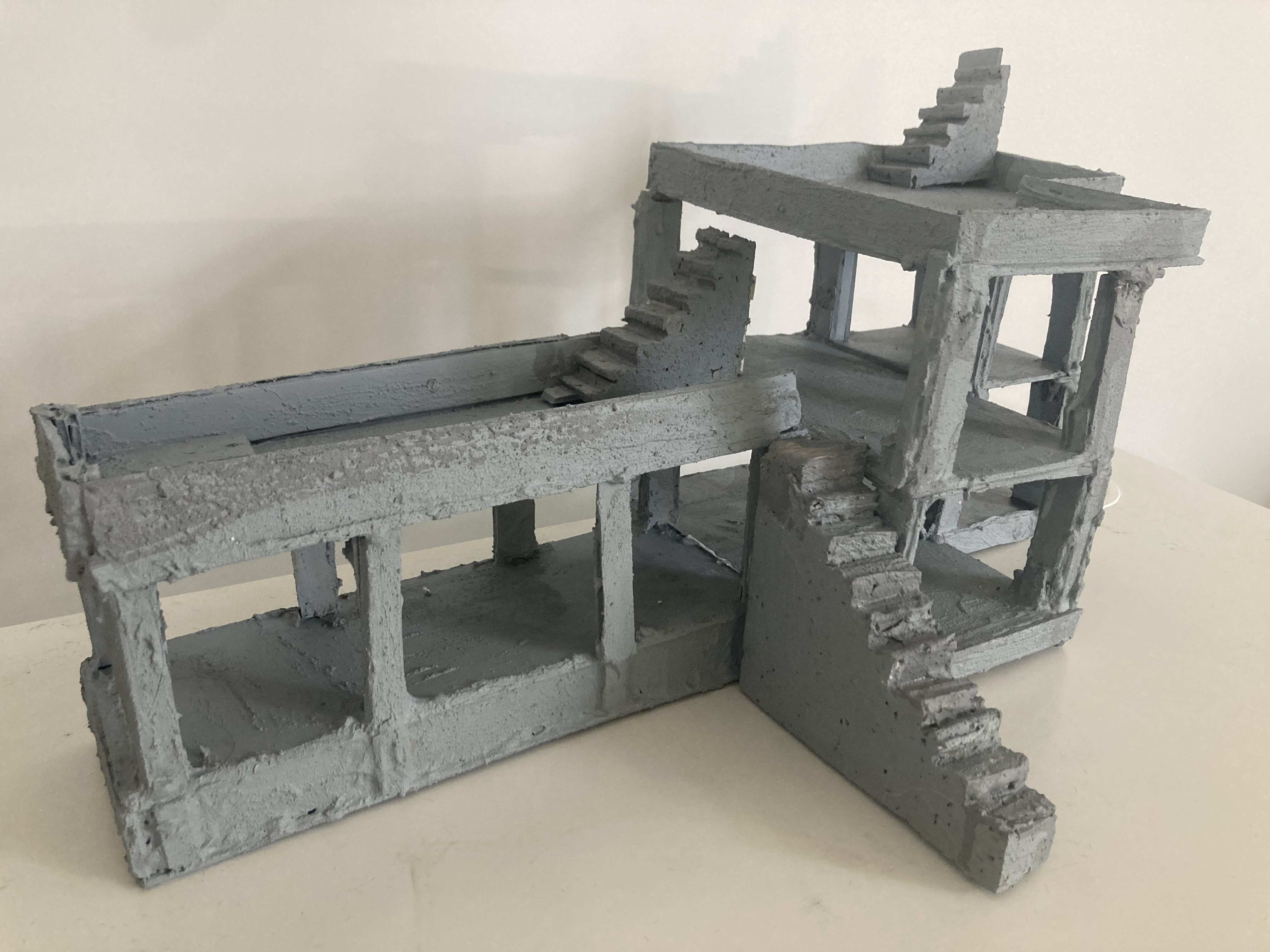 “paused” 2025, balsa wood, paint, plaster, 50 x30 x 60 cm